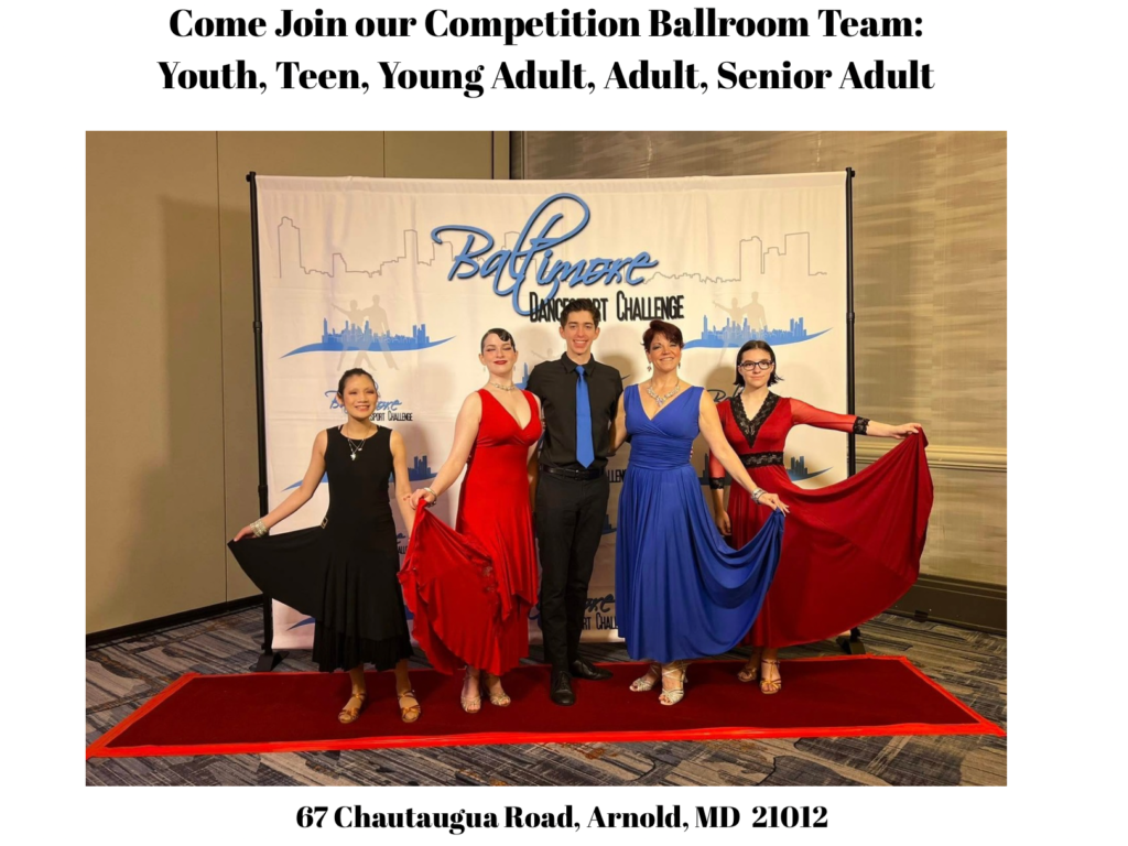 American Style Smooth and American Rhythm. International Standard upcoming. All levels welcome. No audition just a willingness to be open to learning a new skill. Teaches a great work ethic, dedication, teamwork….and lots of dance steps!