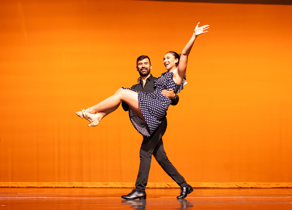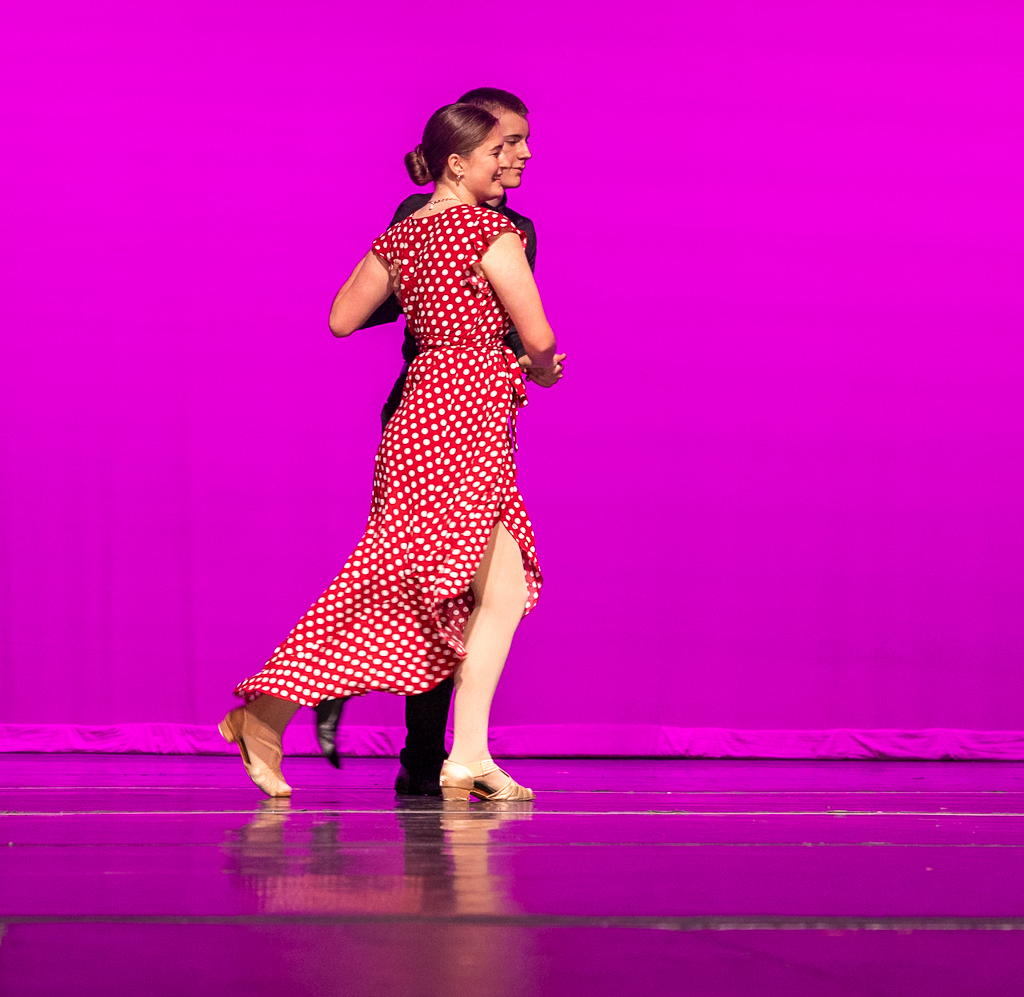 Ballroom focus’s on fundamental skills of couples dancing-posture, frame, lead/follow, and footwork. Ballroom is a life skill-respect, teamwork, cooperation, dedication and great dancing through hard work is the result. Students in this class are encouraged to participate in Ballroom Testing & competition!!